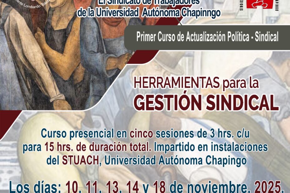 El Sindicato de Trabajadores de la Universidad Autónoma Chapingo (STUACh) a través de la Secretaría de Capacitación Política, Sindical y Cultural tiene el compromiso de fortalecer las capacidades de cada compañero para obtener los conocimientos necesarios, defender nuestros derechos, además… Formación Política-Sindical