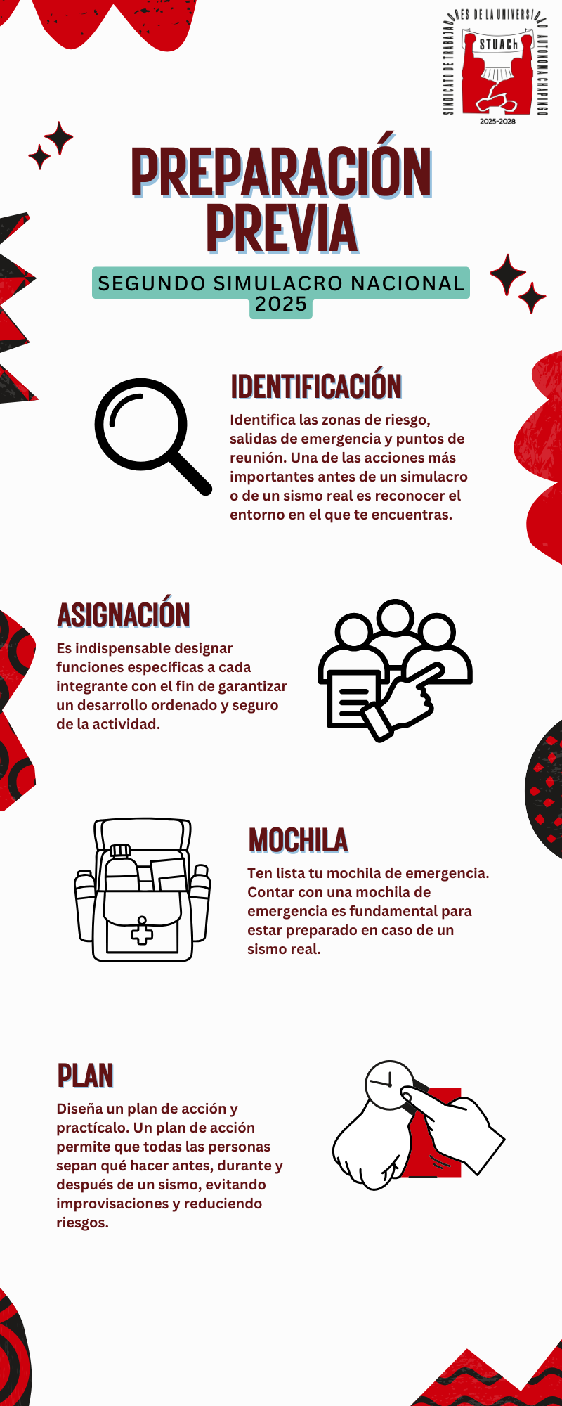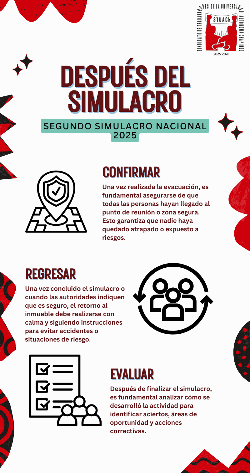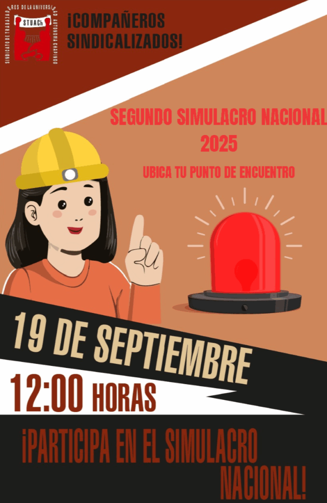 Conoce aquí las indicaciones oficiales para participar en el Simulacro Nacional 2025, diseñado para proteger a la comunidad universitaria y trabajadores afiliados al STUACh.